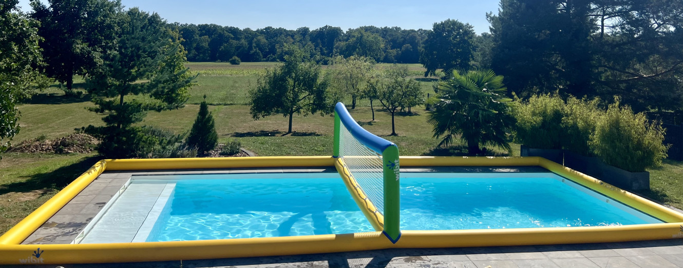 Ce terrain gonflable aquatique vous permet d'effectuer un sport inédit et peu connu : le volley sur l'eau.