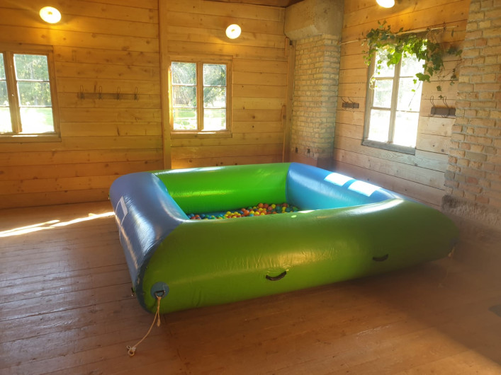 En remplaçant les boules par de l'eau, on pourra utiliser la piscine en tant que pataugeoire.