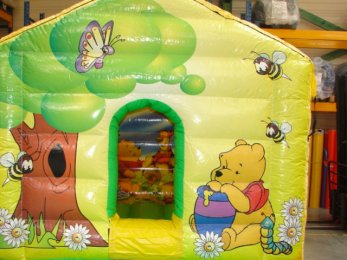 La cabane est une piscine à boules gonflable pour les tout-petits. Compacte et de petite taille, sa structure est pratique en intérieur. En extérieur, son toît créé un espace d'ombre.