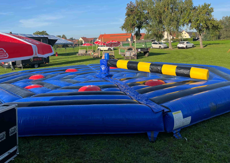 Très visuel et particulièrement amusant, ce jeu gonflable attire rapidement les spectateurs et crée une ambiance dynamique autour de l’animation.